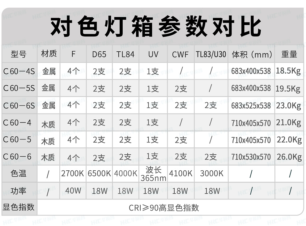 國際標準光源對色燈箱就是對色燈箱里面標配的燈管是符合國際標準的燈管,每個光源的色溫、照度、顯指都是符合國際標準的,裝在對色燈箱箱體里面,從而使對色燈箱達到一個符合國際標準的標準環境,現在市面上通用型的標準光源對色燈箱一般都說多光源,包含D65、D50、D75、TL84、CWF、U30、UV、F/A燈等。
