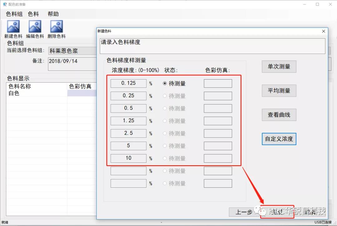 ③ 錄入色料梯度數(shù)據(jù)