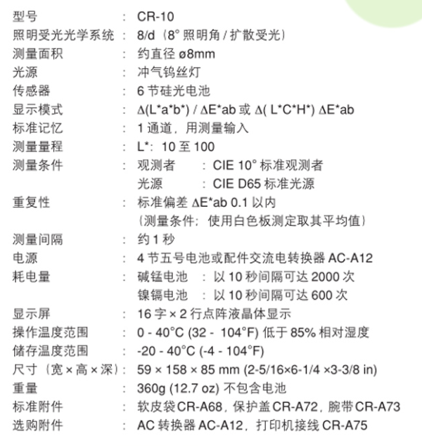 CR-10是一種體積小巧、電池驅動的手持便攜式色差計,適用于快速色彩控制。